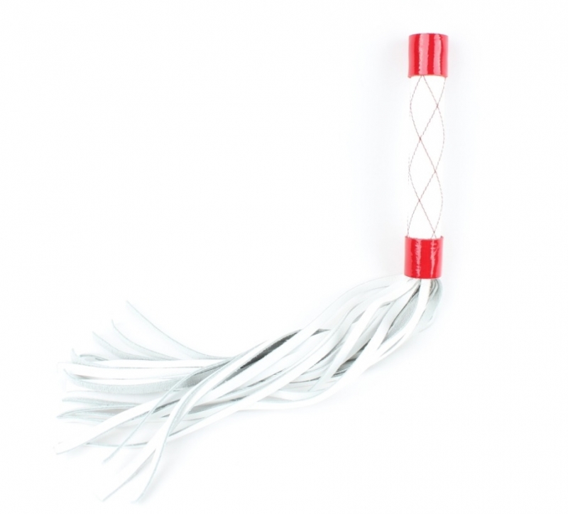 Плеть-многохвостка, из натуральной кожи белого цвета с красным декором - это, лучший вариант для самого первого ударного девайса!
