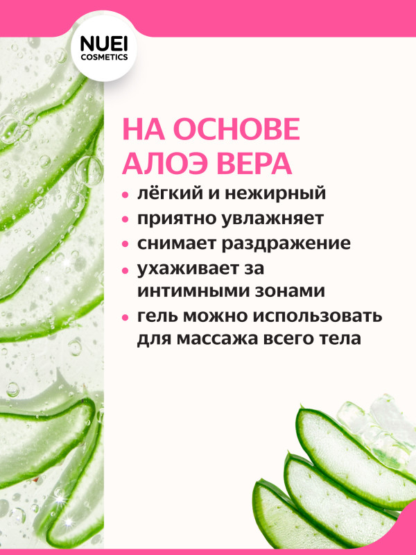 Гель содержит в своем составе алоэ вера, которое оказывает смягчающее и успокаивающее действие на интимные зоны