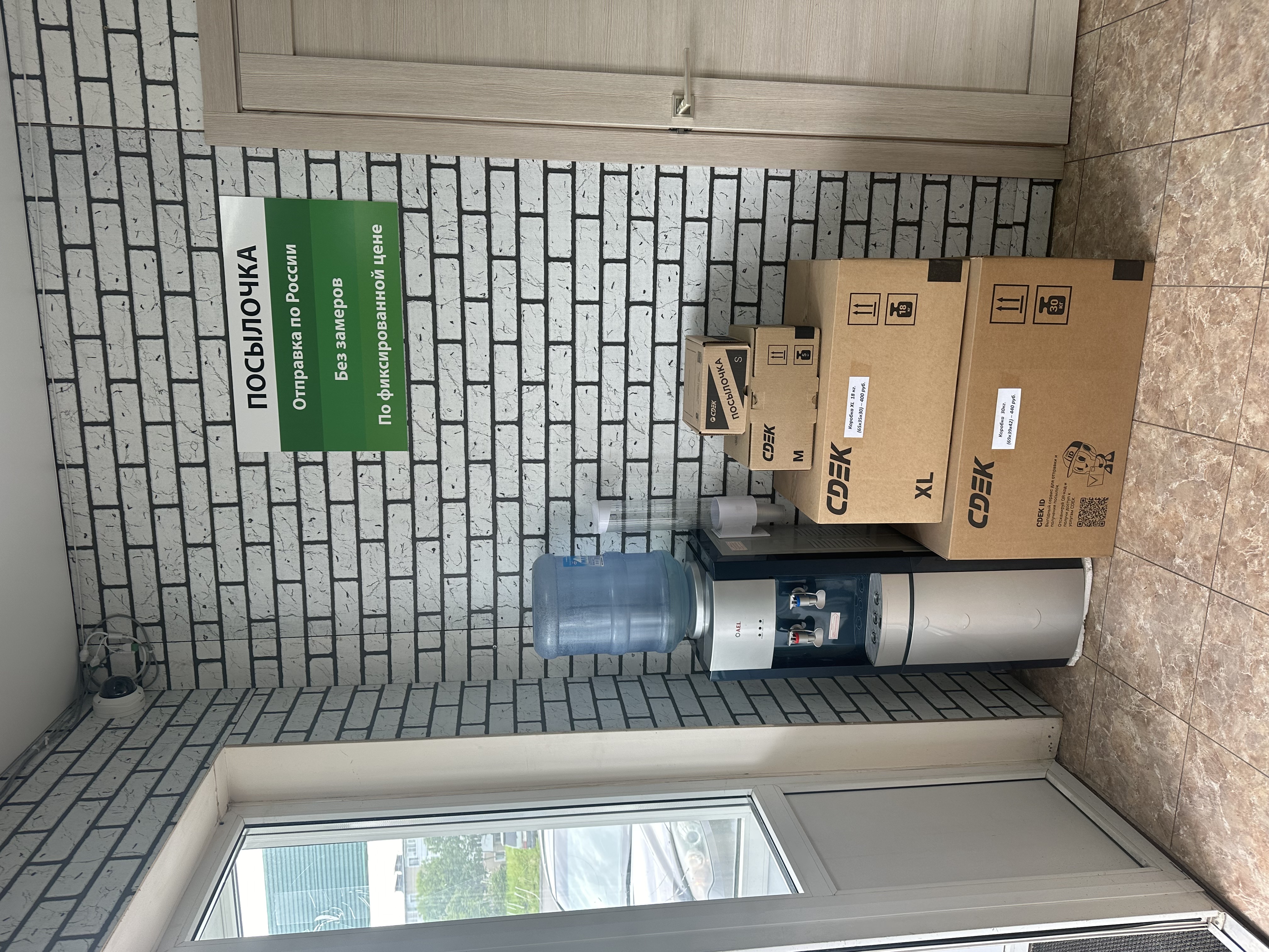 Войти в отделение банка Совкомбанк через центральный вход, на 1 этаже расположен постамат.
